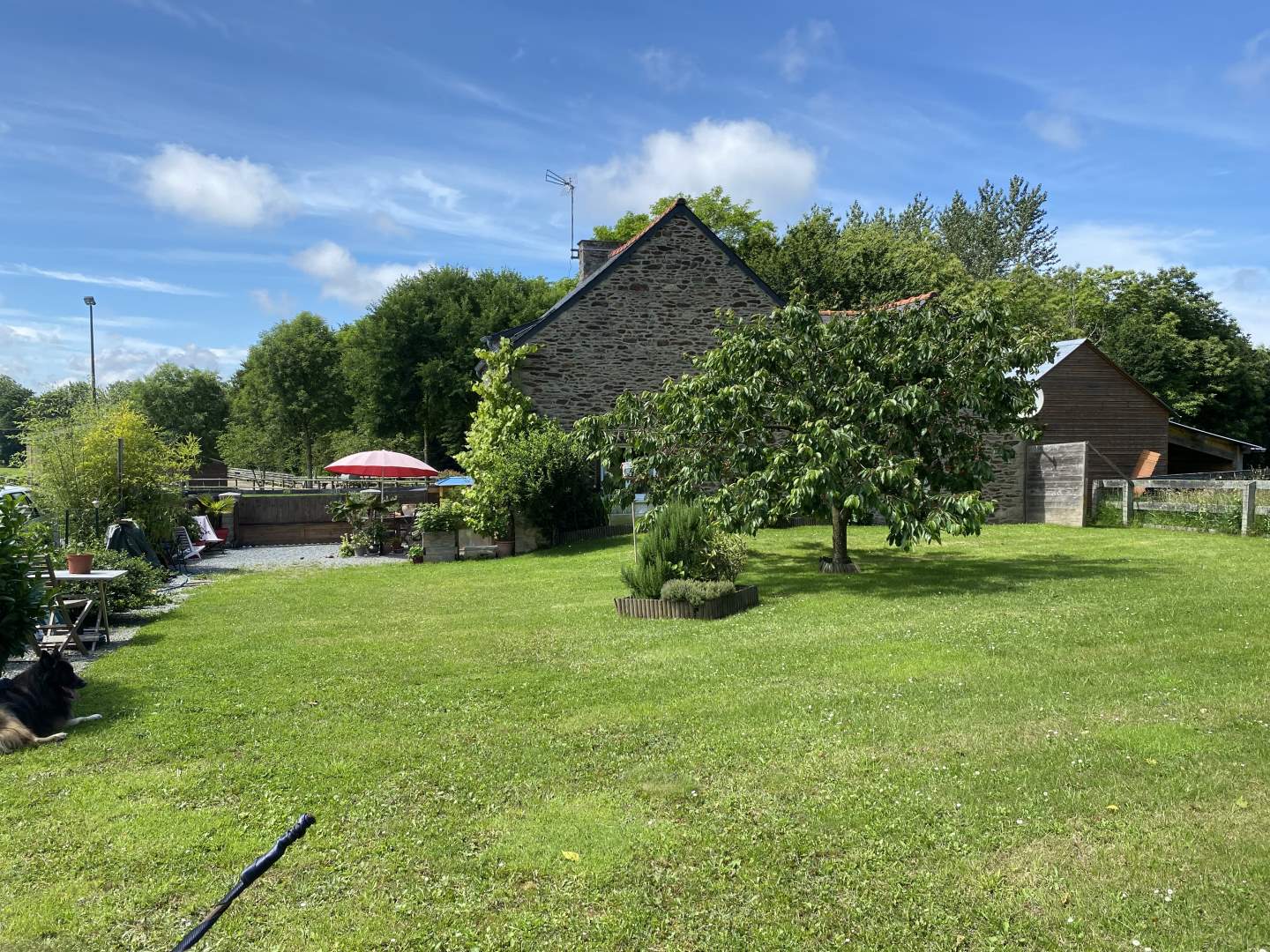 Cellier, abri bois + préau sur l'arrière