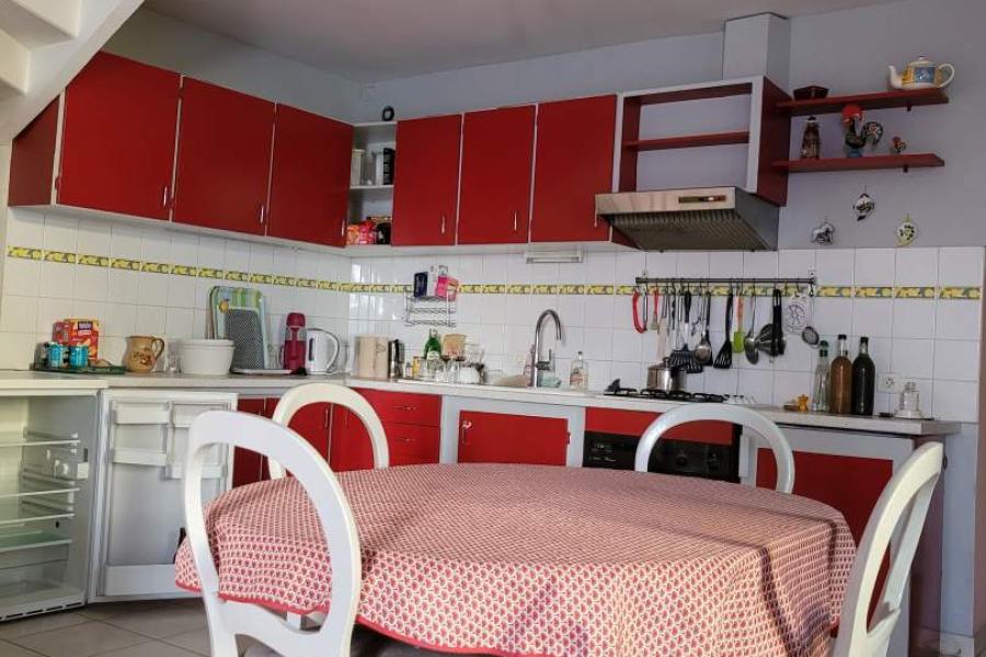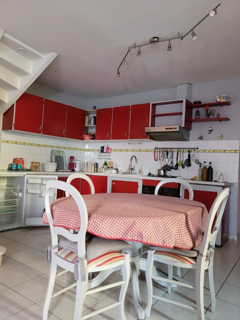 - au rez-de-chaussée : salon-séjour sur cuisine ouverte, salle d'eau-WC, arrière-cuisine, buerau, cellier, carport.